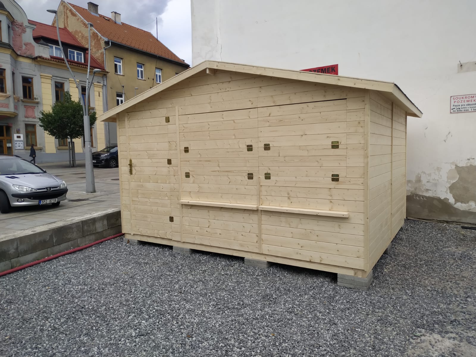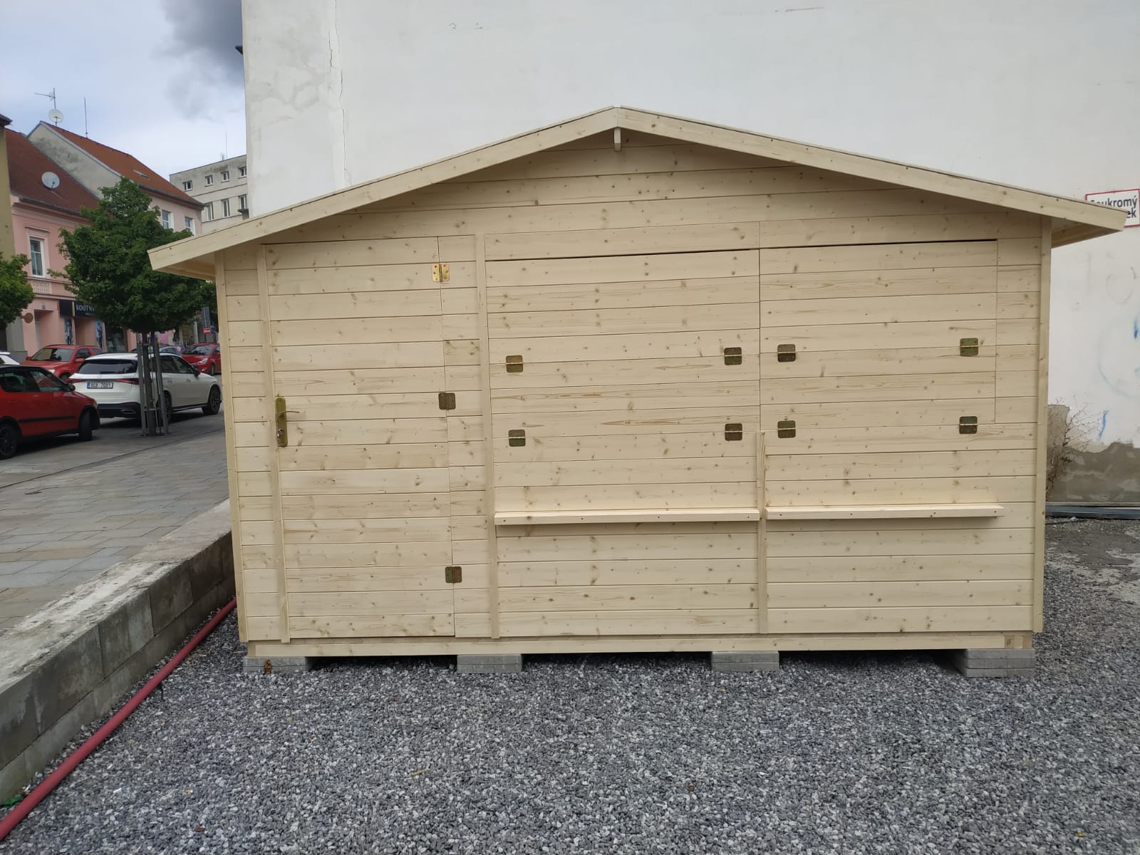 Stánek má přírodní barvu bez jakékoliv povrchové úpravy a je připraven k dalšímu nátěru a impregnaci.